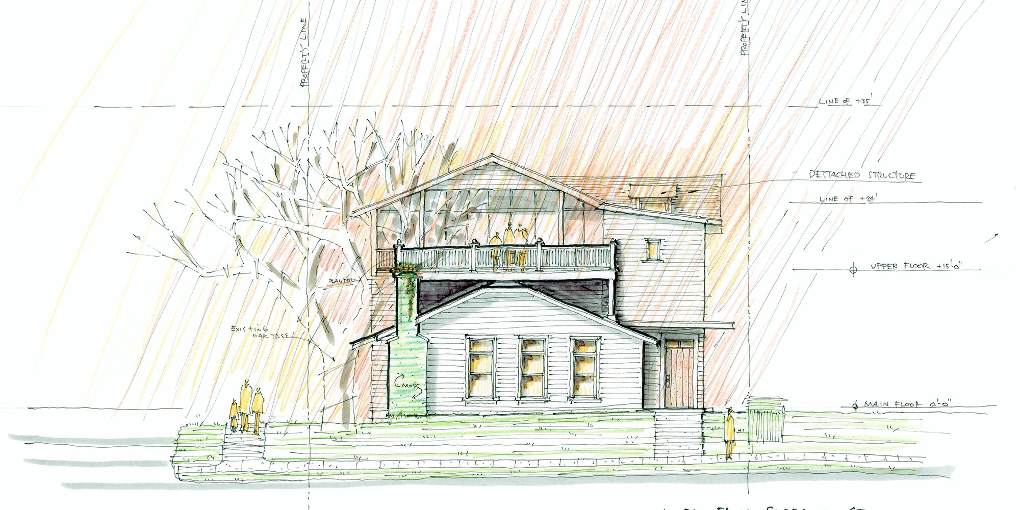 Proposed remodel and expansion of residential property in NW Olympia. The property has a majestic oak tree. The current proposal adds additional living space above the existing house and features a deck to appreciate the beauty of the tree.