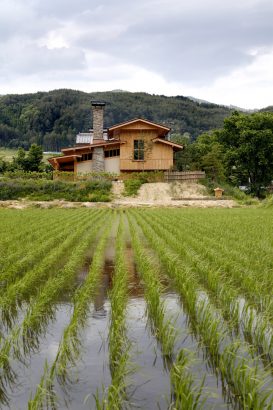 Located in the high mountain town of Takayama, this small home sits reflecting in the clear water of the surrounding rice fields in spring and surrounded by steep, wooded mountains. For this guest house we proposed to our clients a fusion of traditional handcrafted Japanese spaces with western-style elements to insure the happiness and comfort of all guests.