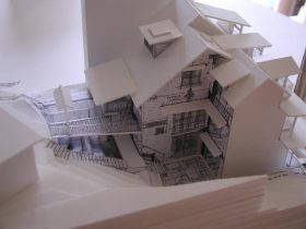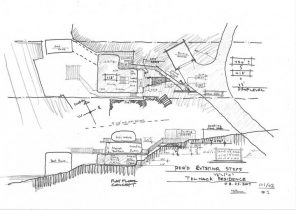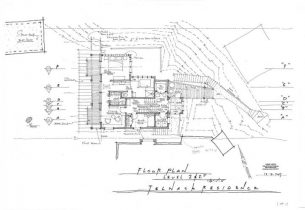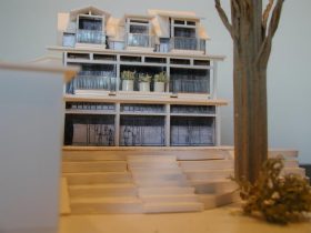 Theirs, a small existing South Sound waterfront house built early in the century, needing demolition, and due to shoreline regulations, rebuilding on the same footprint. Design challenges include a steep, narrow lot with a 23 foot height difference between garage and original entry and a 50 foot lot width complicated by a tall angular house sitting less than 10 feet from their exterior wall. To address the height difference from the parking area to the entry, we proposed a new bridge to span across the steep slope from just below their garage level to an entry ‘genkan’ located at the center of a new three story residence.